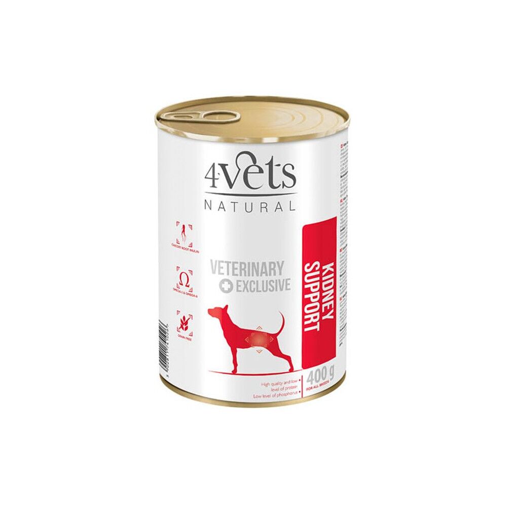 4vets Kidney Support é um alimento em patê para cães com insuficiência renal. Formulado com proteína de elevada qualidade, tem baixo teor de gordura e não perturba o funcionamento dos rins. Contém ácidos gordos essenciais e L-carnitina e tem teor reduzido de ferro.