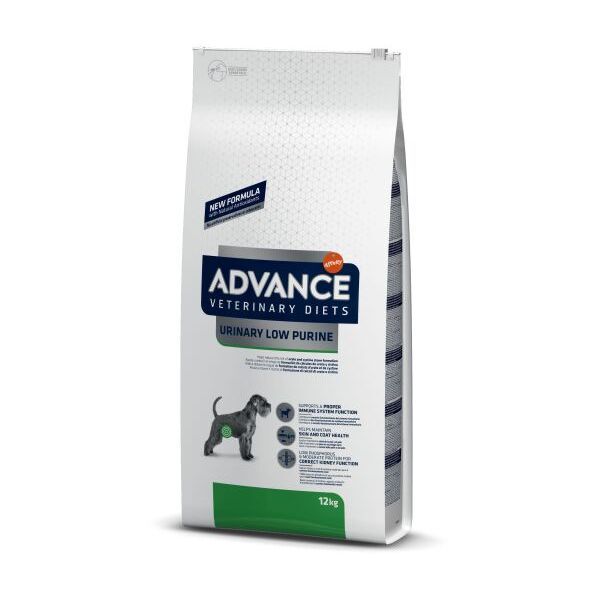 Advance Low Purine é um alimento seco completo para cães adultos, que ajuda no correto funcionamento renal e do sistema imunitário, bem como manter a saúde da pele e do pelo.