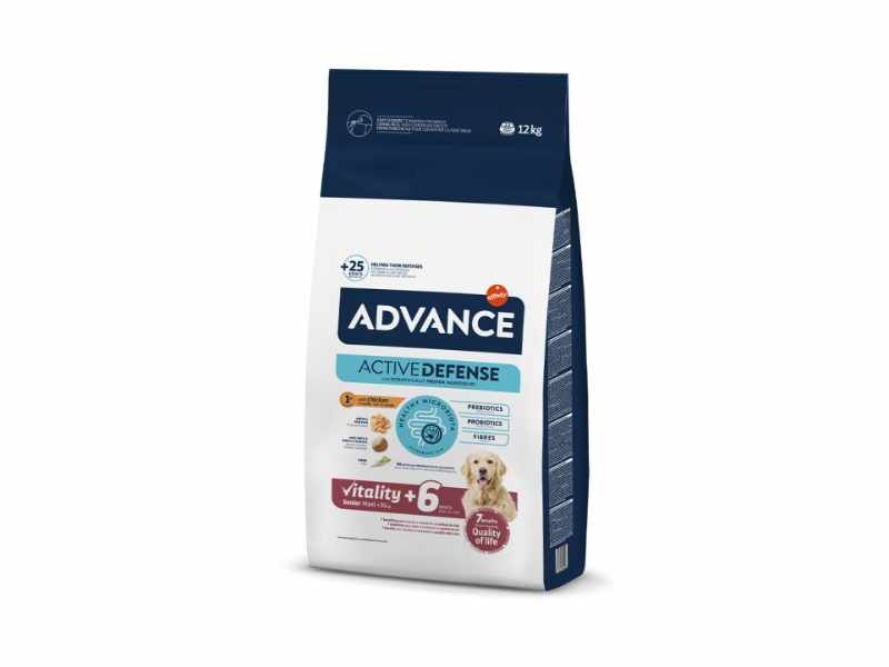 A Advance Senior Vitality +6 Maxi é uma ração premium desenvolvida especificamente para cães de raças grandes com mais de 6 anos de idade. Esta fórmula combina ingredientes de alta qualidade, como frango e arroz, para atender às necessidades nutricionais dos cães seniores, promovendo saúde, vitalidade e bem-estar.