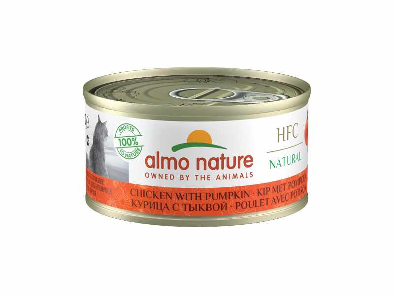 Ingredientes Naturais: O Almo Nature HFC Cat Natural – Frango com Abóbora é preparado apenas com ingredientes 100% naturais, sem adição de corantes, conservantes ou aromatizantes artificiais.