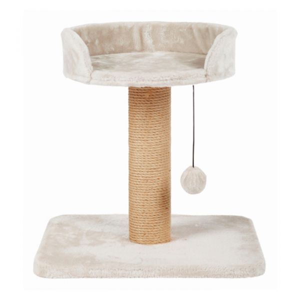 É indicado para qualquer tipo de gato, resultando numa junção de satisfação, descanso e diversão. Possui forro em pelúcia (poliéster), poste envolto em juta (superfície destinada ao animal arranhar ou trepar) e um brinquedo suspenso em corda para momentos de brincadeira. Com uma configuração simples e clara, este arranhador encaixa-se facilmente na harmonia de qualquer lar.