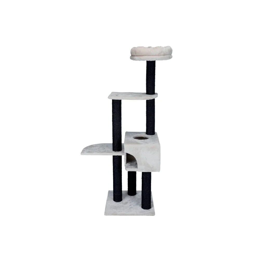 Forrado em pelúcia macia (poliéster) e em juta, este arranhador dispõe de um nicho aconchegante que não só constitui um ótimo refúgio para o animal como também um excelente local para a brincadeira, com uma plataforma no topo com uma cama amovível, e postes revestidos em juta para o animal afiar as suas unhas. Com uma estrutura direita e sequencial, este arranhador de aspeto simples e moderno permitirá que o seu animal descontraia tranquilamente, proporcionando calmos serões familiares.