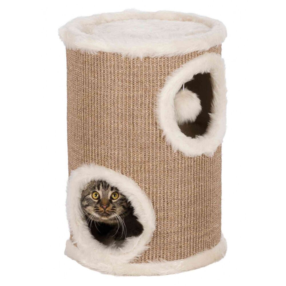 – Com zona de arranhar em sisal e forro em pelúcia longa