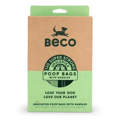 Sacos com Asas Biodegradáveis Para Dejetos Beco Bags vem em uma caixa de 120 sacos, para apanhar os dejetos do seu cão, bastante forte e resistente com alças para facilitar o uso. Feitas a partir de materiais ecológicos e degradáveis.