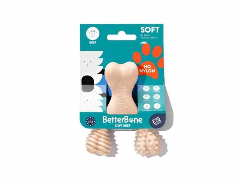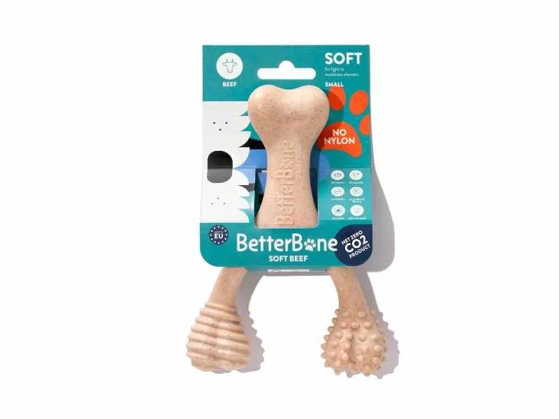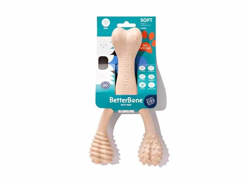 O BetterBone é a escolha perfeita para o seu cão e para o planeta, combinando durabilidade, segurança e sustentabilidade. Desenvolvido com materiais naturais e métodos de produção éticos, este brinquedo de roer oferece uma experiência saudável e segura para cães de todas as idades, especialmente aqueles que adoram mastigar intensamente. Feito a partir de ingredientes não-tóxicos, o BetterBone não só promove a saúde dentária do seu cão, como também ajuda a reduzir o impacto ambiental graças ao seu design neutro em carbono. Se procura um brinquedo que seja bom para o seu cão e amigo do ambiente, o BetterBone é a escolha certa.
