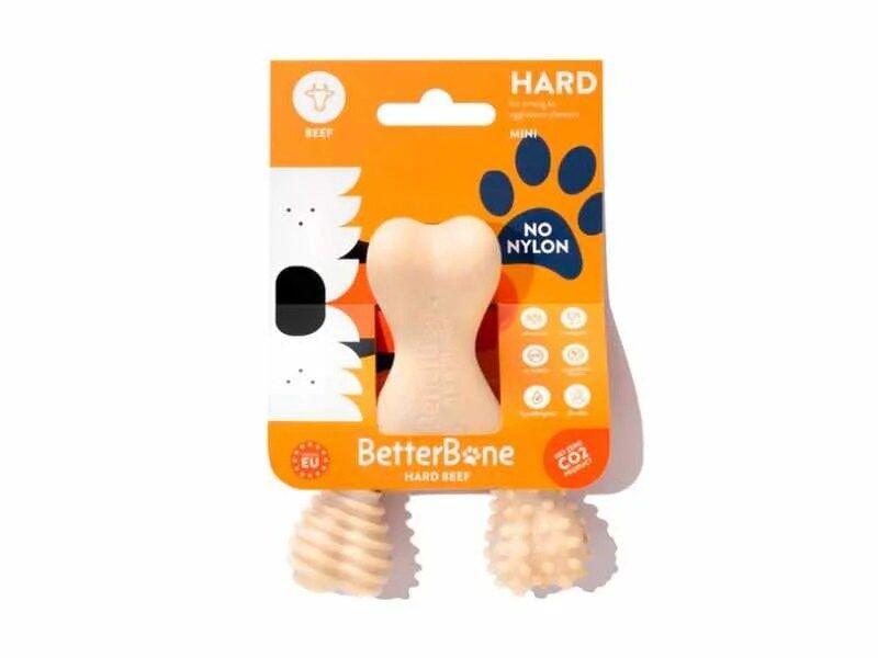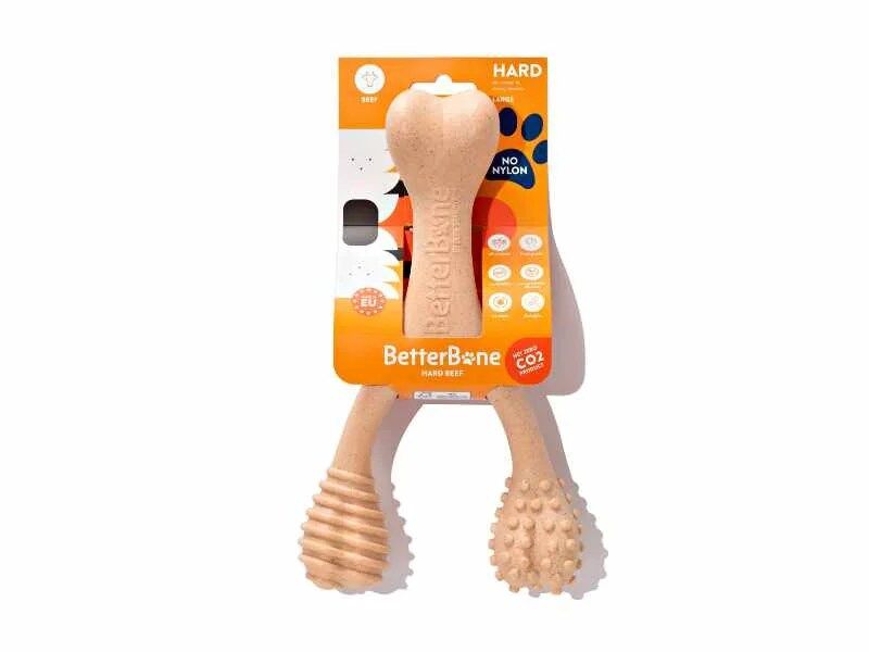O BetterBone é a escolha perfeita para o seu cão e para o planeta, combinando durabilidade, segurança e sustentabilidade. Desenvolvido com materiais naturais e métodos de produção éticos, este brinquedo de roer oferece uma experiência saudável e segura para cães de todas as idades, especialmente aqueles que adoram mastigar intensamente. Feito a partir de ingredientes não-tóxicos, o BetterBone não só promove a saúde dentária do seu cão, como também ajuda a reduzir o impacto ambiental graças ao seu design neutro em carbono. Se procura um brinquedo que seja bom para o seu cão e amigo do ambiente, o BetterBone é a escolha certa.