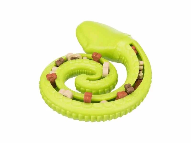 Brinquedo interativo para cães: O Snacky-Snake da Trixie é um brinquedo interativo feito de borracha durável, projetado para proporcionar diversão e entretenimento para o seu cão. Ele é ideal para estimular o instinto de busca e mastigação do seu animal de estimação, mantendo-o entretido por horas.