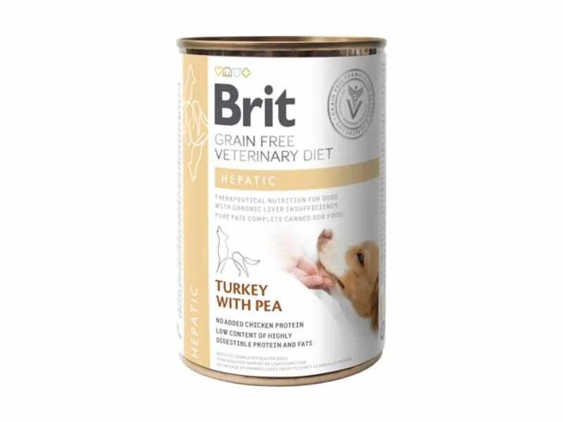 Brit Veterinary Diet Dog Hepatic Grain-Free Turkey with Pea é um alimento dietético completo indicado para cães com insuficiência hepática crónica.