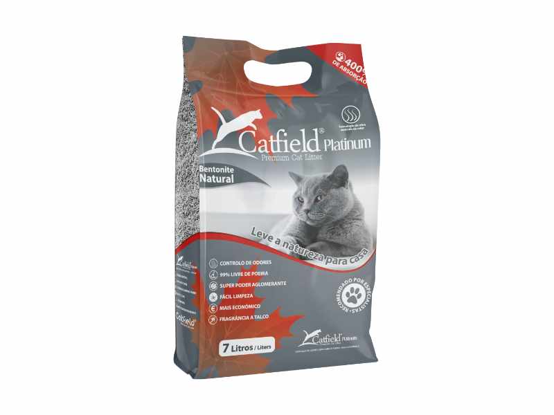 Catfield Premium Cat Litter Platinum, a escolha superior para a higiene do seu gato, combinando aglomeração confiável com um toque de luxo. Nossa areia aglomerante de alta qualidade oferece uma solução premium que mantém a bandeja do seu gato limpa e livre de odores, proporcionando conforto e elegância.