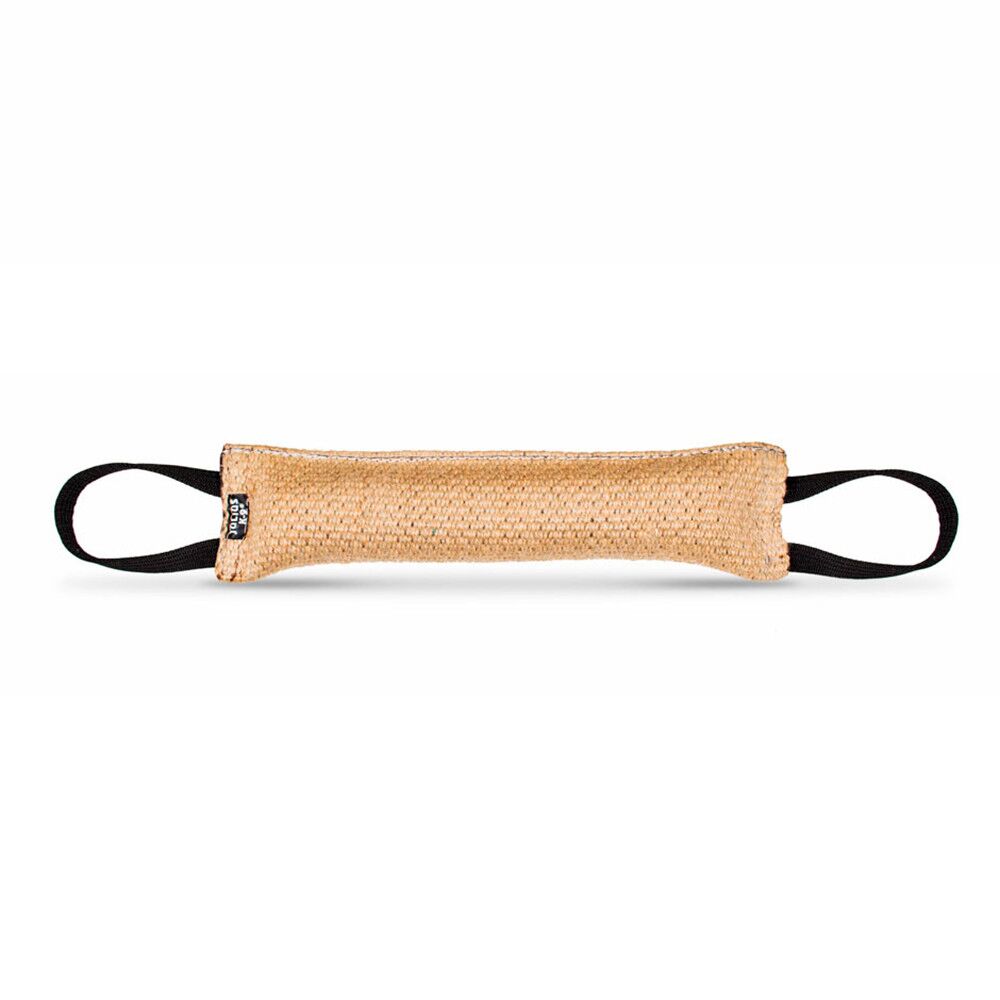 – O churro de duas pegas da marca Julius K9 é revestido por um material resistente mas suave na boca do cão.