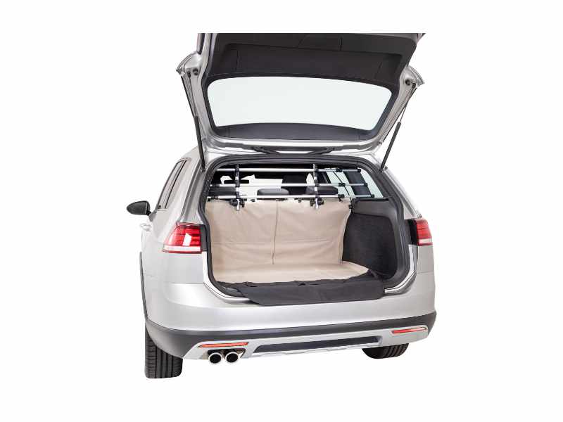 Instruções de Uso: Coloque a Cobertura em Poliéster para Bagageira de Automóvel da Trixie na bagageira antes de transportar objetos ou animais de estimação.