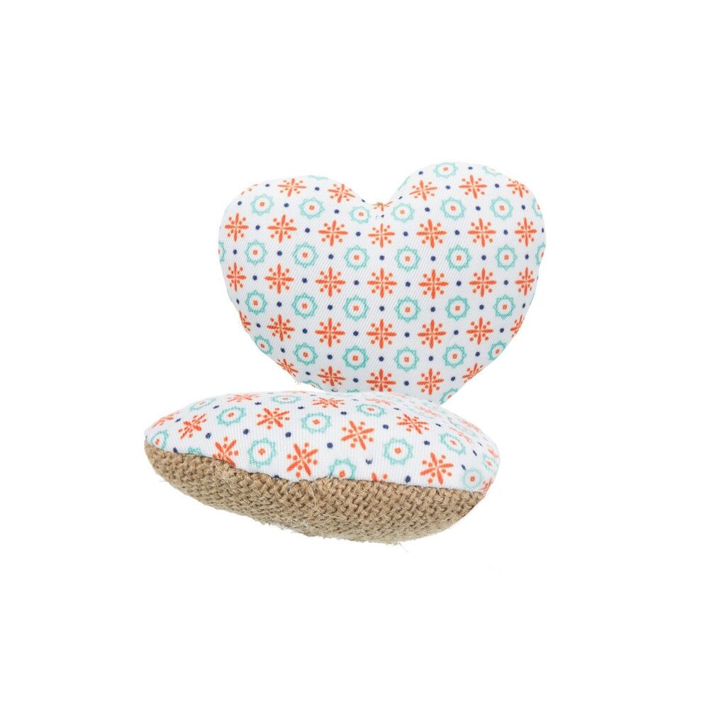 Coração para gatos: de um lado de tecido, dou outro de juta. Um brinquedo que proporcionará horas de diversão ao seu felino. Com preenchimento em tecido que ruge, para maior atração.