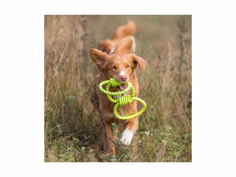 Brinquedo é flutuante, ideal para as brincadeiras no verão e para fortalecer a relação entre tutores e patudos, através de jogos de força ou de puxar. A corda ajuda a manter os dentes e as gengivas saudáveis.