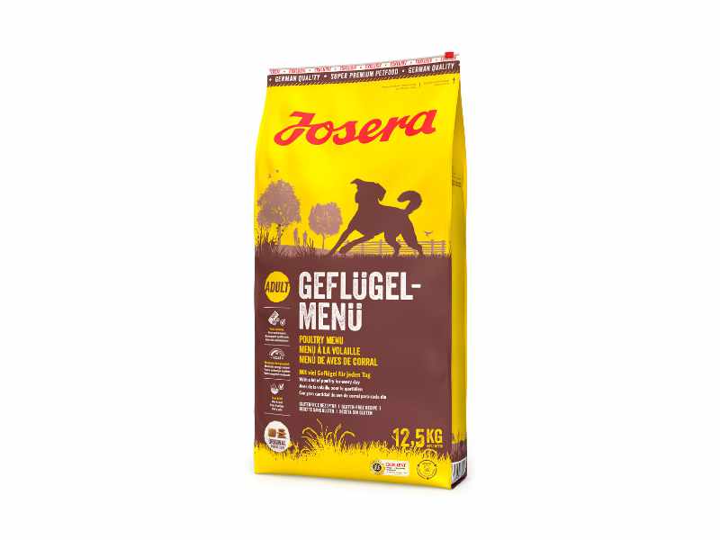 Josera de aves é um alimento seco para cães com uma ótima relação qualidade-preço. Adequado a cães com atividade normal, é um alimento com ácidos gordos essenciais para uma pele saudável e pelo brilhante. Com conteúdo energético moderado, para a boa saúde geral do cão.