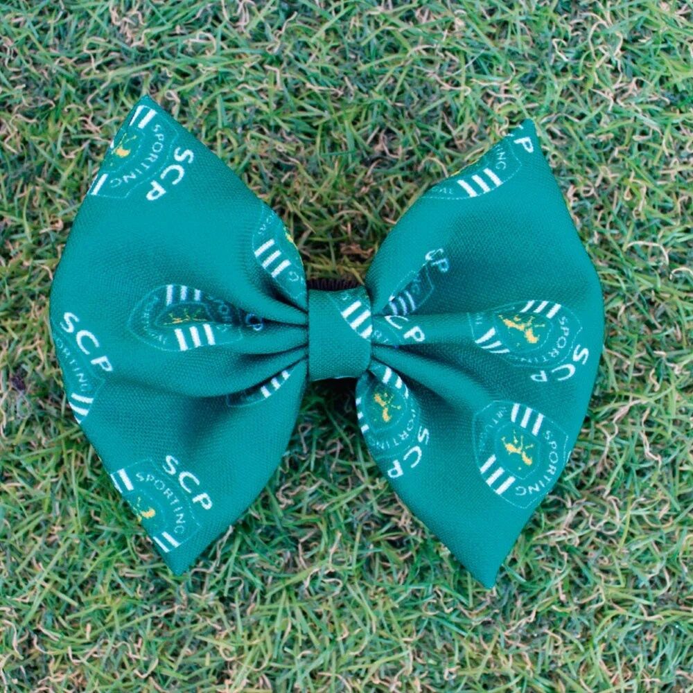 Laço Sporting CP com impressão em alta definição do logótipo do clube para ser utilizado na coleira ou prender no pelo do animal. Fabricado em Portugal.