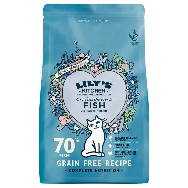 Lily’s Kitchen de Peixe Branco e Salmão é um alimento seco completo. Elaborado com 70% de peixe preparado fresco, o seu gato vai adorar o odor tentador e o sabor delicioso. E você vai adorar como ele irá ficar saudável com esta alimentação, bem como o ronronar de agradecimento. As nossas receitas para gato são sem cereais e não contêm farinha de carne, apenas proteínas de alta qualidade e ingredientes naturais, com adição de vitaminas e minerais, o que significa que são naturalmente saudáveis para o seu gato. Uma vez que os gatos gostam de comer pequenas quantidades de cada vez, este alimento seco completo e equilibrado também é perfeito para o seu gato comer ao longo do dia. É igualmente uma ótima receita para combinar com as nossas receitas húmidas e está cheia de amor para cuidar deles por dentro e por fora.