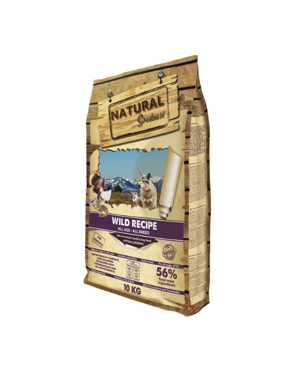 Ração hipoalergénica formulada sem cereais ou grãos para satisfazer as necessidades nutricionais de todas as raças em todas as fases da vida, com um teor elevado de ingredientes cárnicos que os cães encontrariam a caçar em estado selvagem. A carne utilizada é de grau humano, providenciando níveis de proteínas de qualidade alta que ajudam a desenvolver e a manter a energia e a massa muscular.