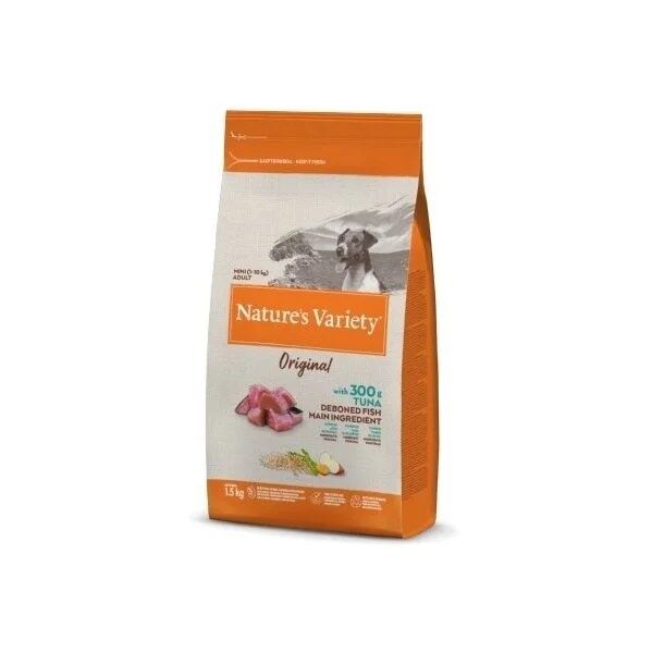 carne de atum sem espinhas* (20%), ervilhas desidratadas* (14%), aveia* (13%), arroz integral* (10,5%), proteína de milho, gordura de aves de capoeira* (8%), proteína desidratada de atum (7%), proteína desidratada de salmão (5%), hidrolisado de proteína (4%), polpa de beterraba*, cenoura desidratada* (0,5%, equivalente a 4% de cenoura fresca), maçã desidratada* (0,3%, equivalente a 2% de maçã fresca), substâncias minerais., *Ingredientes naturais.