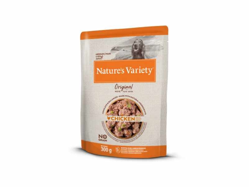 A Nature’s Variety Original No Grain Patê com Frango é um alimento húmido completo, especialmente formulado para cães adultos de raças médias e grandes. Sem cereais e com ingredientes naturais de alta qualidade, esta receita oferece uma nutrição saborosa e equilibrada, ideal para cães com sensibilidades alimentares ou digestões delicadas.