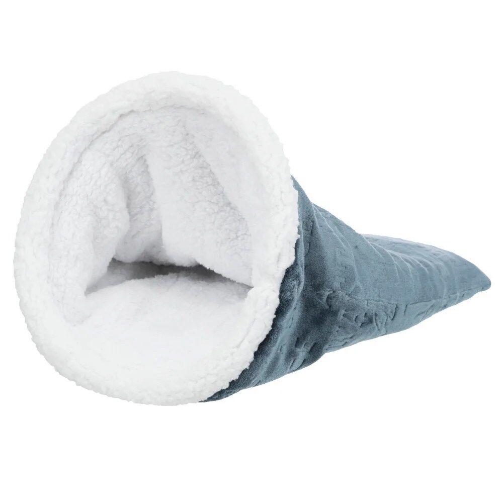 Nicho para gatos azul e branco, em peluche, macio e de elevada qualidade. Cama ideal para manter o seu gato quente e confortável.