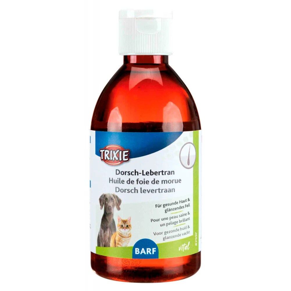 Óleo de Bacalhau para cães e gatos rico em Omega 3 e Omega 6, para melhor condição do pêlo e da pele do seu animal de estimação.