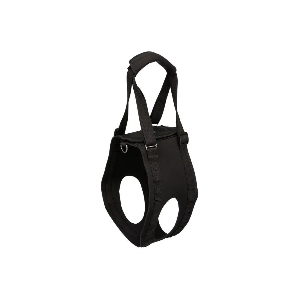 Este arnês de reabilitação dá apoio ao cão para caminhar. Feito em poliéster confortável, de cor preta, adequado para as patas frontais ou traseiras. Indicado para apoio pós-operatório, durante doença ou para animais com paralisia. Apoio para caminhar, subir ou descer escadas, ou para entrar no carro.