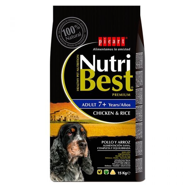 NutriBest Senior é um alimento Premium formulado por nutricionistas e veterinários para o seu cão desfrutar de uma saúde ideal. Contém algas marinhas do Atlântico Norte para uma pele e pêlo saudáveis. É pobre em gordura e rica em vitaminas e minerais para promover a saúde dos cães Senior ( 7 anos)
