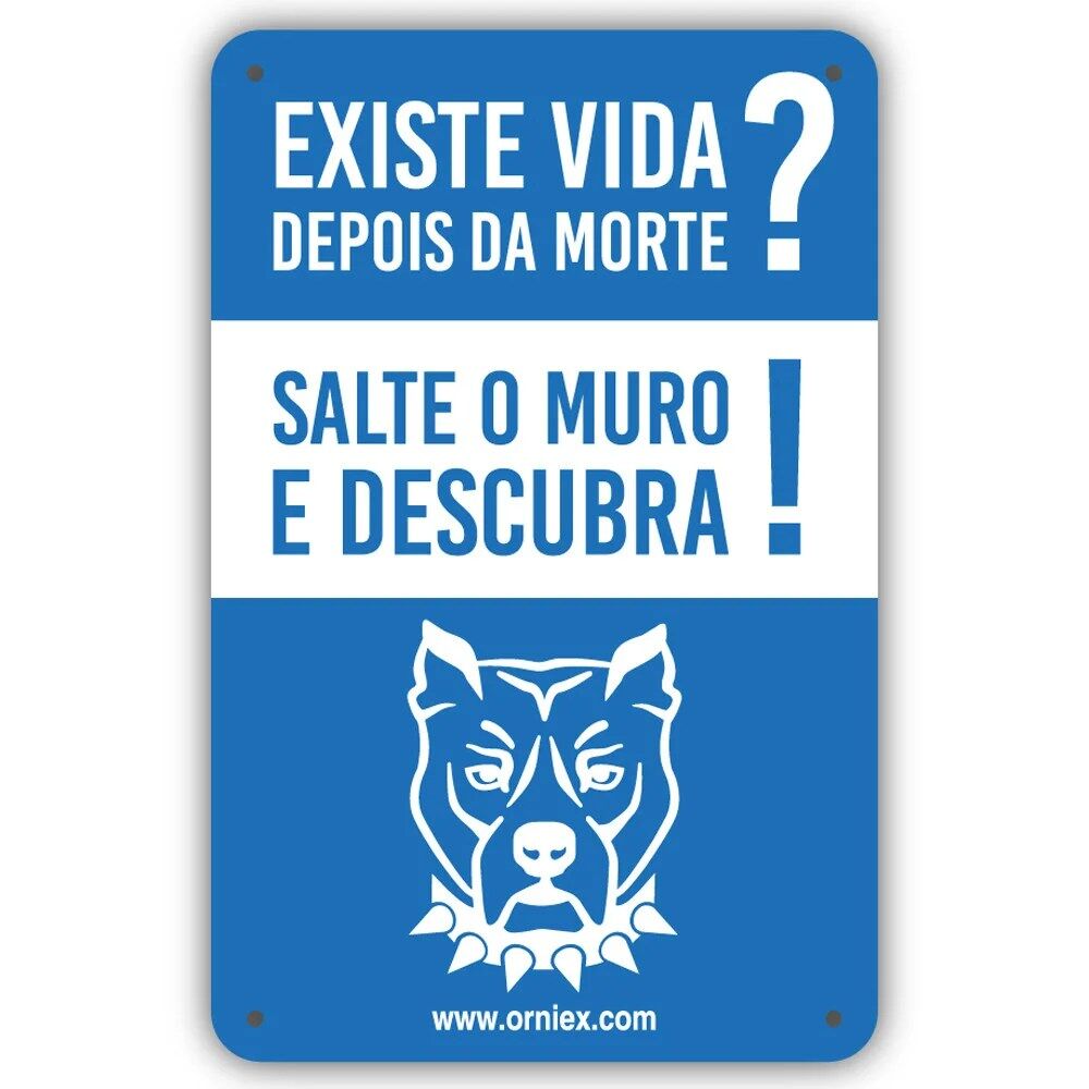 Placa PVC “Existe vida depois da morte? Salte o muro e descubra!”