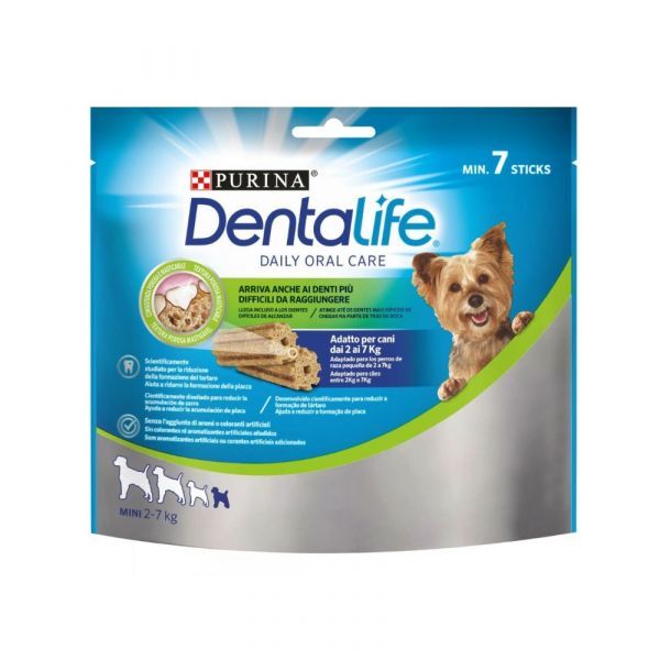 Cães Snacks dentais Dentalife Snacks Extrasmall 7 Sticks 69 gr PURINA DENTALIFE PARA CACHORROS Extra MINI 5x69g: Purina DentaLife é um snack dental inovador e cientificamente comprovado que ajuda a limpar dentes posteriores de difícil alcance, que são os mais vulneráveis ao acúmulo de placa bacteriana e tártaro.