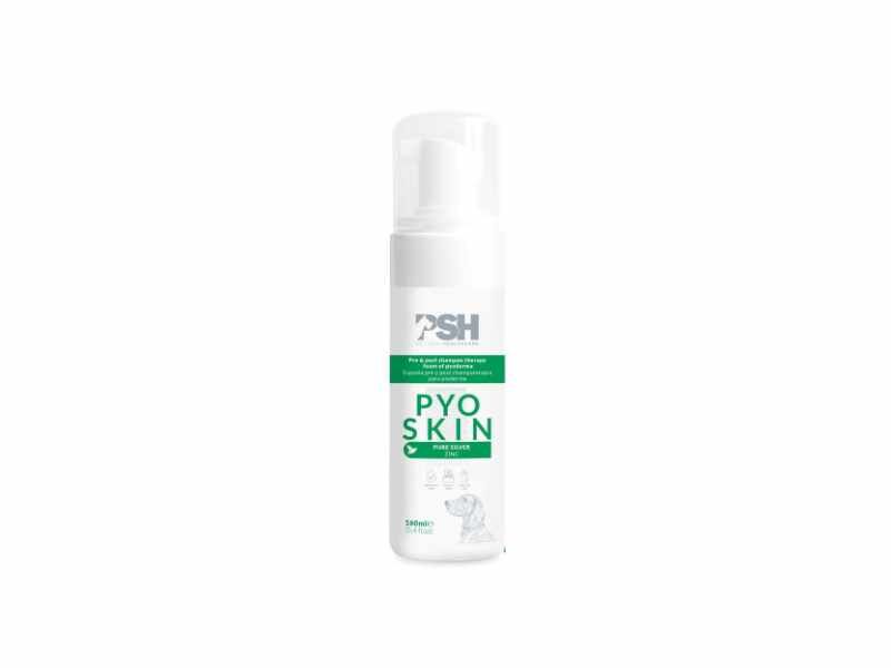 A Espuma Pyo Skin é uma espuma co-adjuvante da champuterapia prescrita, ajudando a melhorar a sintomatologia. Formulado com glicerina, prata pura em pó e zinco. A prata pura, obtida fisicamente, inativa as enzimas intracelulares das bactérias, fungos e microrganismos e, ao mesmo tempo, danifica o ADN bacteriano, impossibilitando a reprodução das bactérias.O zinco ajuda a reparar os tecidos danificados e promove a síntese de queratina e colagénio, prevenindo a queda de pelo.
