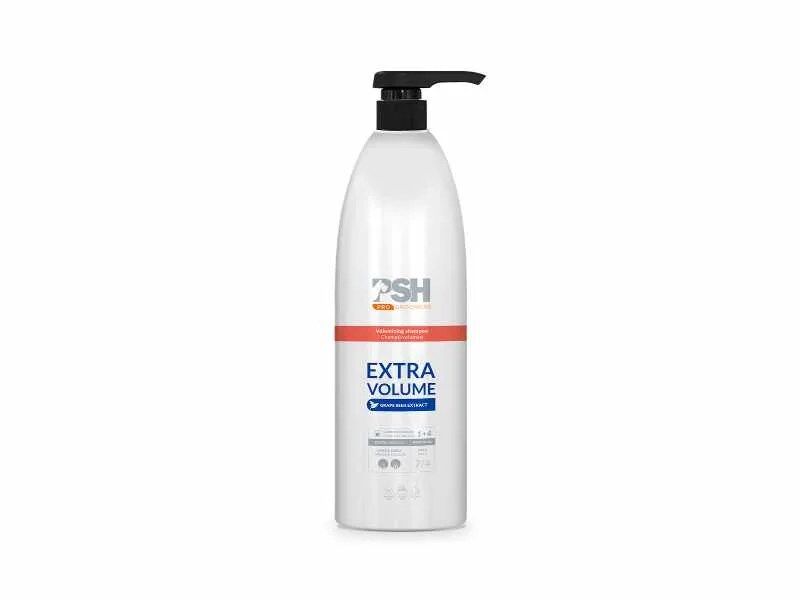 O champô PSH Extra Volume corresponde ao passo 2, o banho específico, em que o objetivo é obter o melhor resultado, de acordo com a raça, o tipo de pêlo e as necessidades específicas de cada animal. Recomendado para pelos encaracolados e que necessitam de volume extra. Formulado com extrato de uva que hidrata e fortalece o pelo.