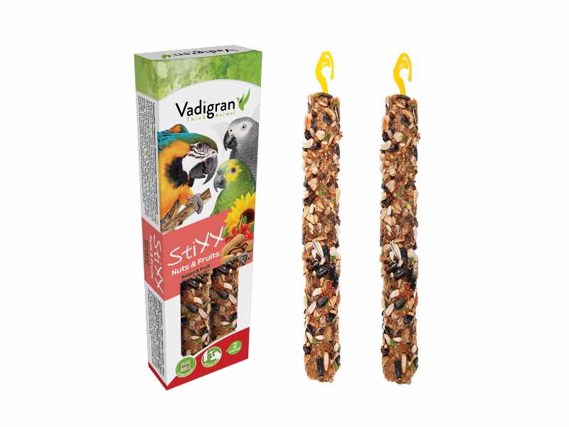 Os Stixx da Vadigran são uma explosão de sabor e textura projetada especificamente para satisfazer as exigências alimentares dos grandes papagaios. Cada palito é cuidadosamente formulado para proporcionar uma experiência de mastigação enriquecedora, mantendo o seu companheiro emplumado entretido e saudável.