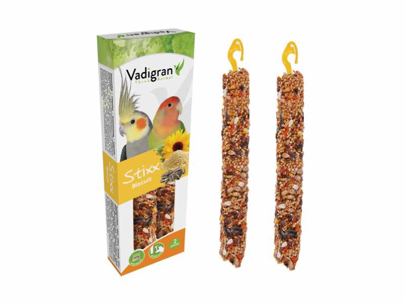 Os Stixx com Biscoito da Vadigran são a escolha perfeita para mimar o seu grande periquito com um petisco irresistível. Cada palito é cuidadosamente elaborado, combinando a crocância do biscoito com ingredientes de alta qualidade, proporcionando um deleite saboroso que seu amigo alado vai adorar.