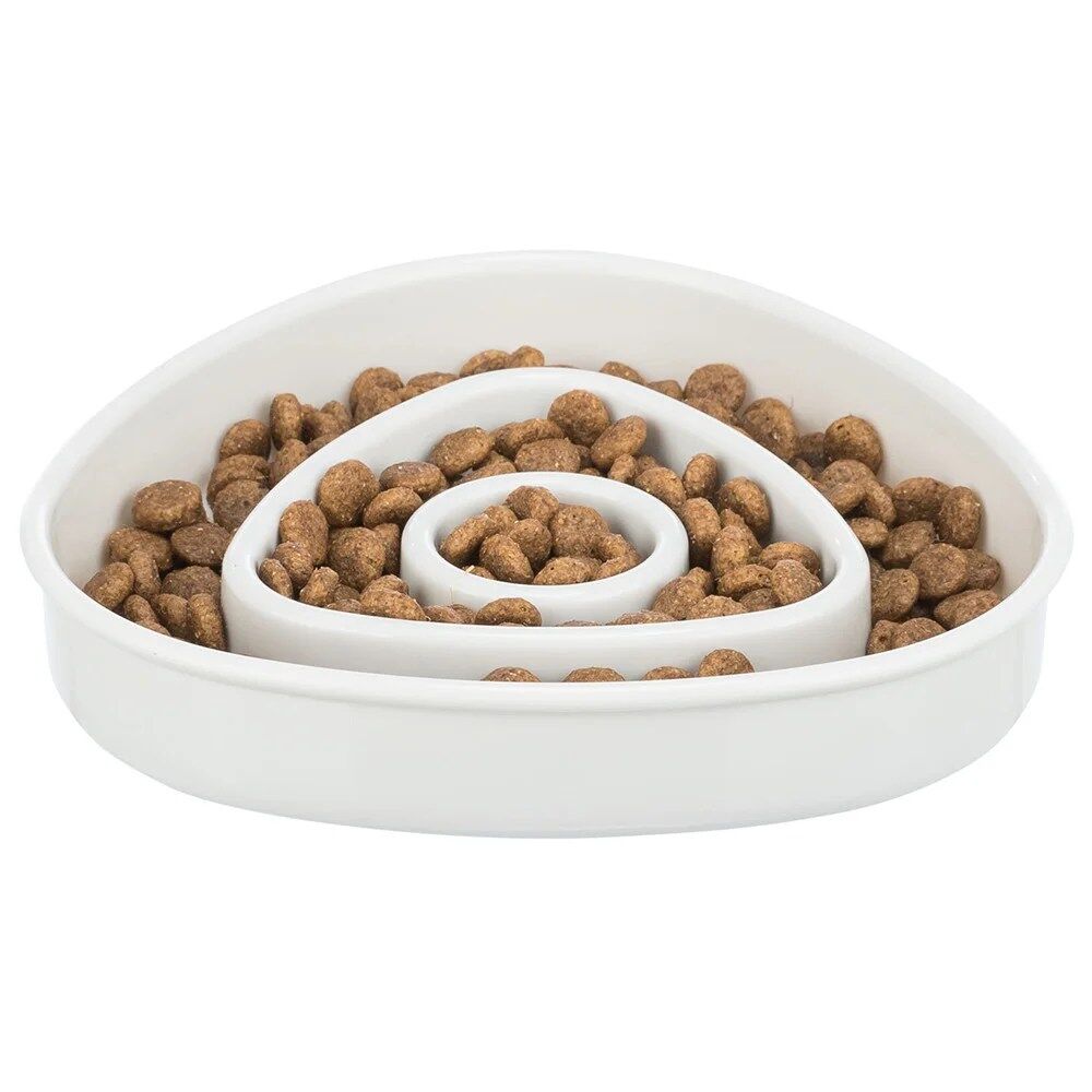 Taça slow feed triangular de plástico para gatos – Trixie