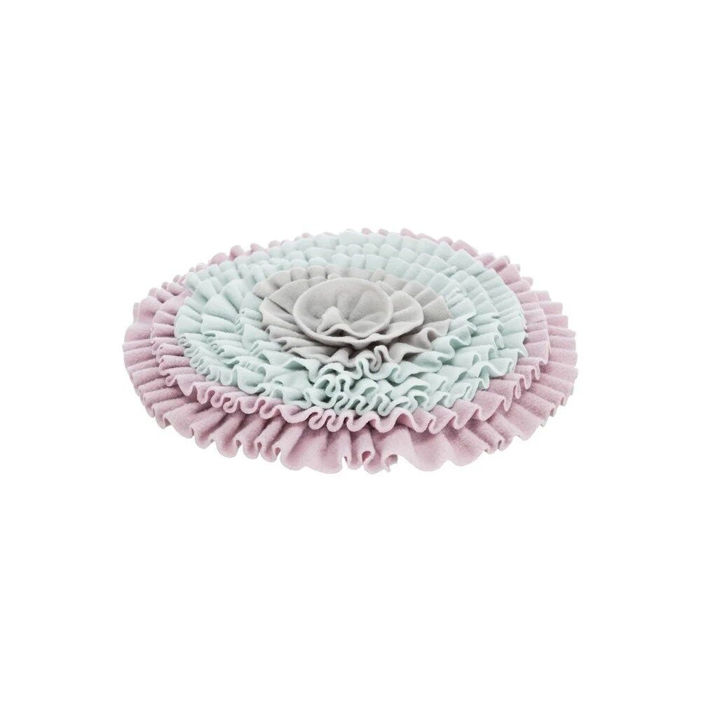 Este tapete para farejar é adequado a cachorros e a gatinhos. Pode ser usado para esconder snacks ou a ração diária, evitando, neste caso, que o animal coma excessivamente rápido. A base em plástico amovível impede o amarrotar e facilita a limpeza.