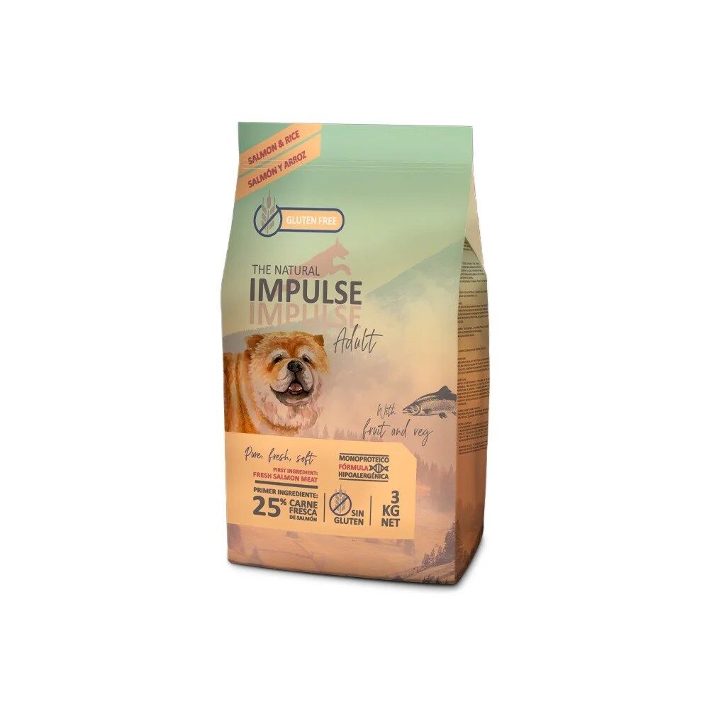 The Natural Impulse Adult é um alimento seco, completo e equilibrado, para cães adultos. Nesta ração, o salmão é a única proteína, combinado com frutas e vegetais. Uma dieta formulada com produtos mediterrâneos, para o bem-estar e saúde geral do seu melhor amigo.
