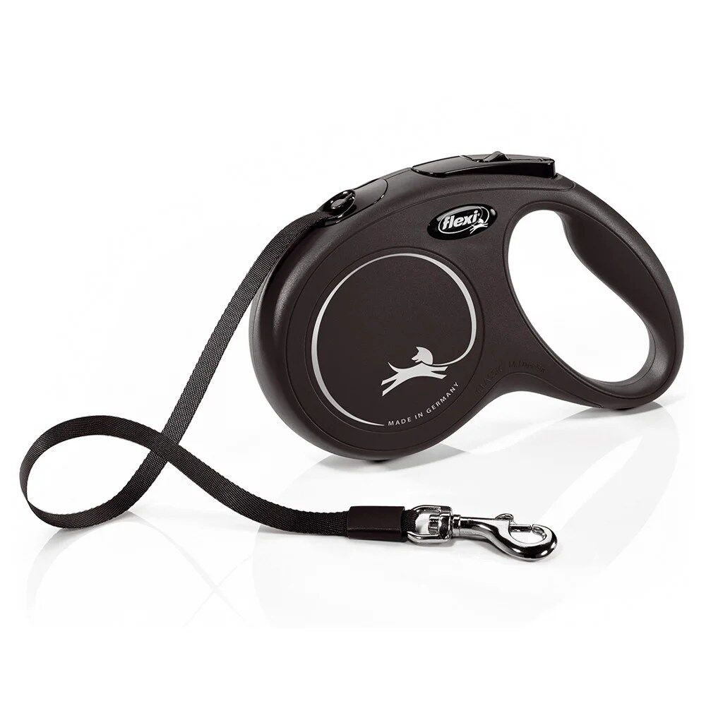 Trela New Classic de fita preta para cães da Flexi