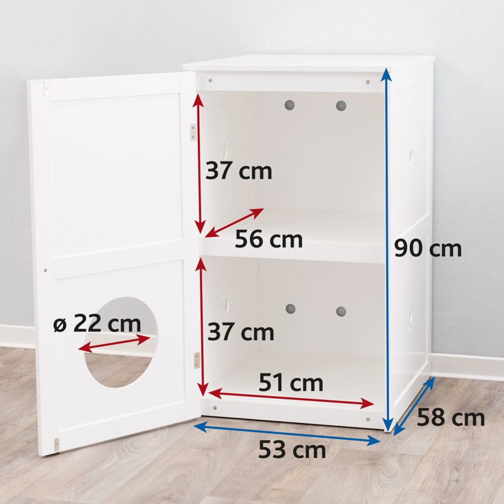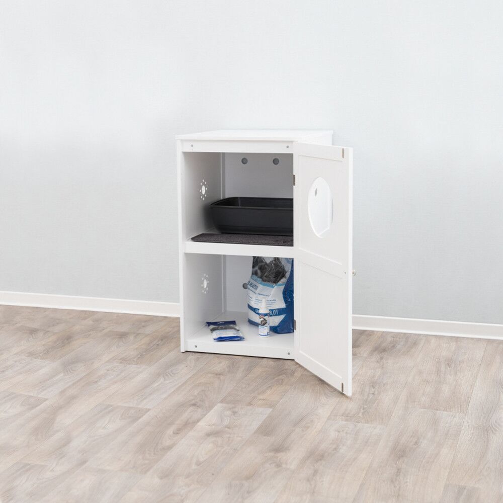 Esta casa pode também ser usada como área de descanso dos felinos. O compartimento livre pode ser utilizado para armazenamento da areia e acessórios do seui amiguinho. O orifício de entrada na parte superior facilita a limpeza da bandeja no nível superior e o orifício de entrada pode ser colocado na parte superior ou inferior.