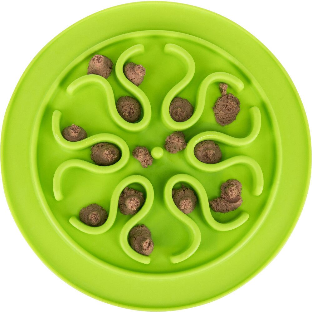 Este comedouro baixa a ingestão de alimento devido ao retardamento resultante da atividade. Evita que o alimento seja consumido rapidamente. Indicado para alimentos secos ou húmidos. Com base antiderrapante, para maior conforto.