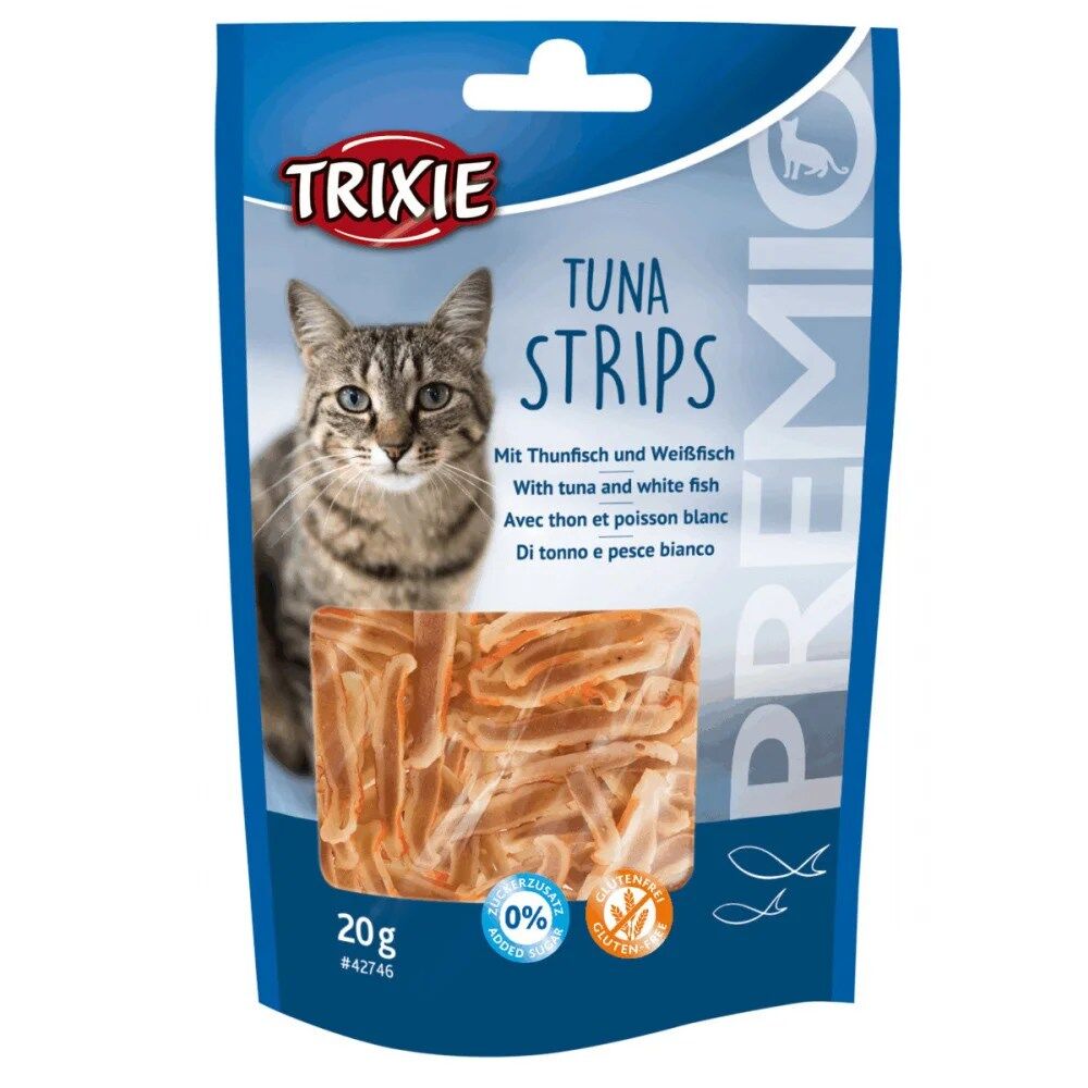 Os snacks Trixie Premio Tuna Strips são ideais para dar ao animal entre as refeições.