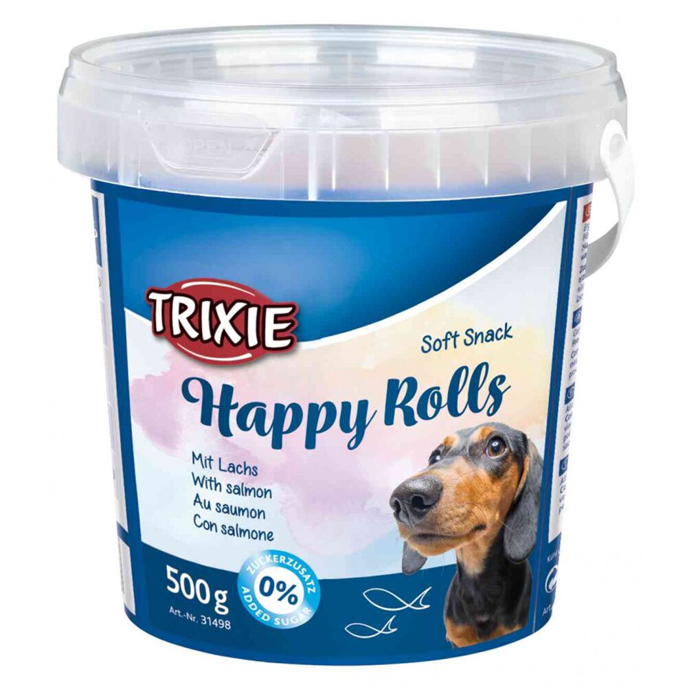 Os Soft Snacks Happy Rolls possuem salmão na sua composição, prometendo fazer as delícias dos patudos. A receita sem açúcares adicionados, para além de ser benéfica para a saúde do cão, ajuda a controlar o seu peso. O balde de 500 gr com tampa hermética, mantém as propriedades do alimento por mais tempo, ajudando a conservar a sua frescura.