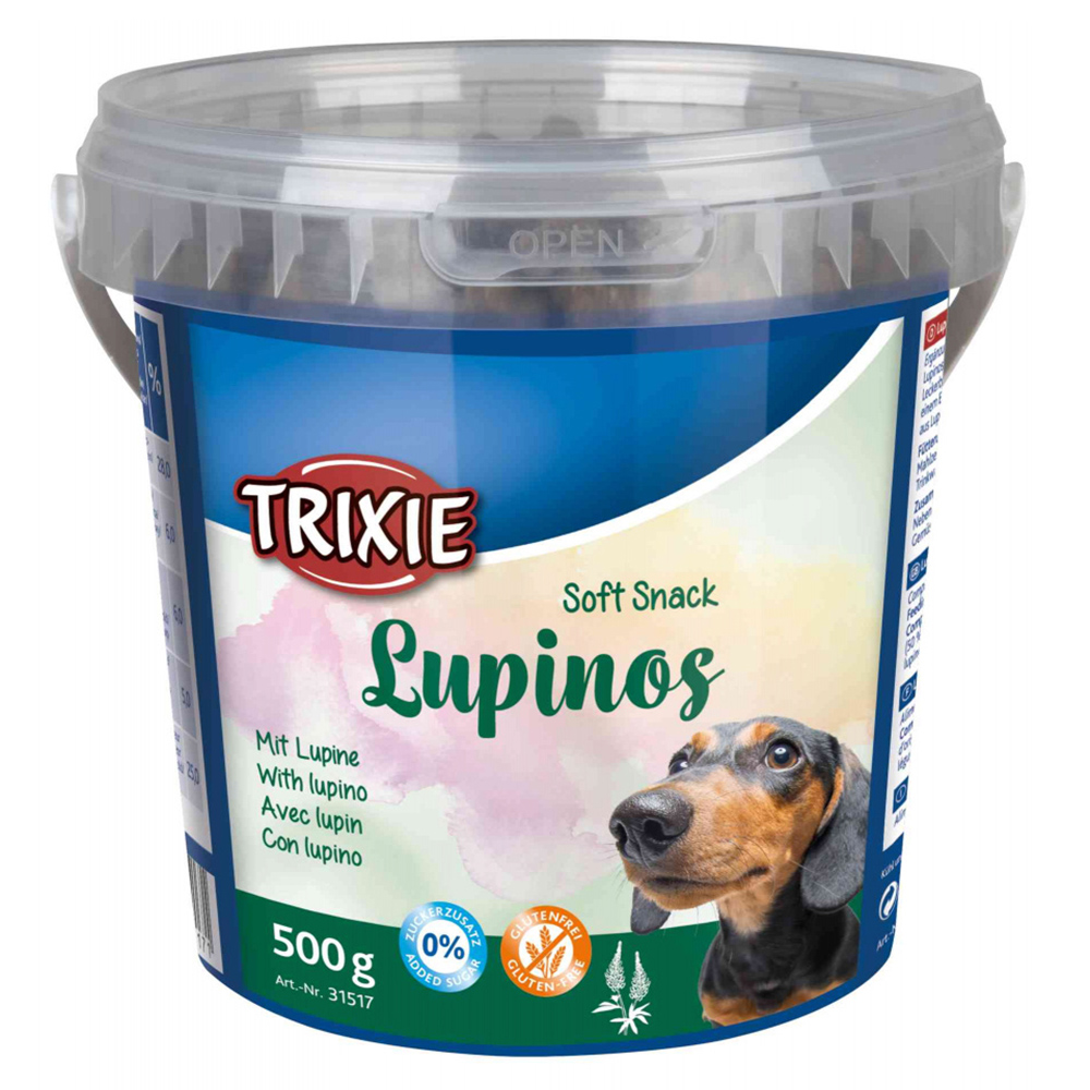 Os Soft Snack Lupinos possuem na sua composição frango e proteínas vegetais valiosas (tremoço), prometendo fazer as delícias dos patudos. Estes snacks não contêm glúten, pelo que ajudam a reduzir as sensibilidades alimentares do animal. A receita sem açúcares adicionados, para além de ser benéfica para a saúde do cão, ajuda a controlar o seu peso. O balde de 500 gr com tampa hermética, mantém as propriedades do alimento por mais tempo, ajudando a conservar a sua frescura.