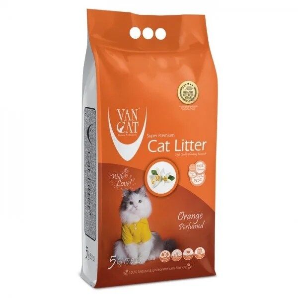 Areia Van Can, com cheiro a laranja, 100% natural e com um nível de deteção de odores superior a 50%. Nível de poeira de apenas 0.5%.
