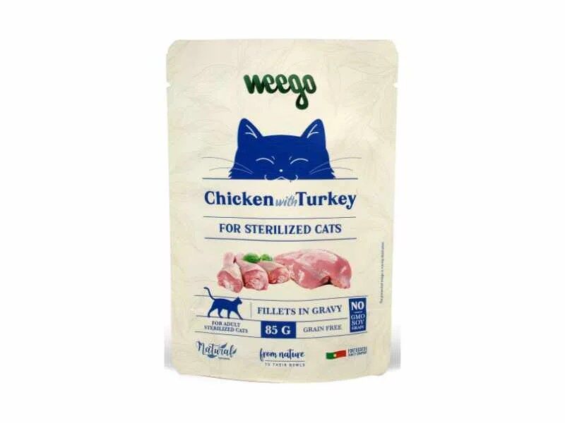 O Weego Wet Cat Food Turkey for Sterilized Cats é um alimento húmido premium desenvolvido especificamente para gatos esterilizados. Formulado com carne de peru de alta qualidade, ajuda a manter um peso equilibrado e fornece todos os nutrientes essenciais de que o seu gato precisa para se manter saudável. Com uma textura apetitosa e um sabor delicioso, este alimento contribui para o bem-estar e vitalidade diária do seu felino.